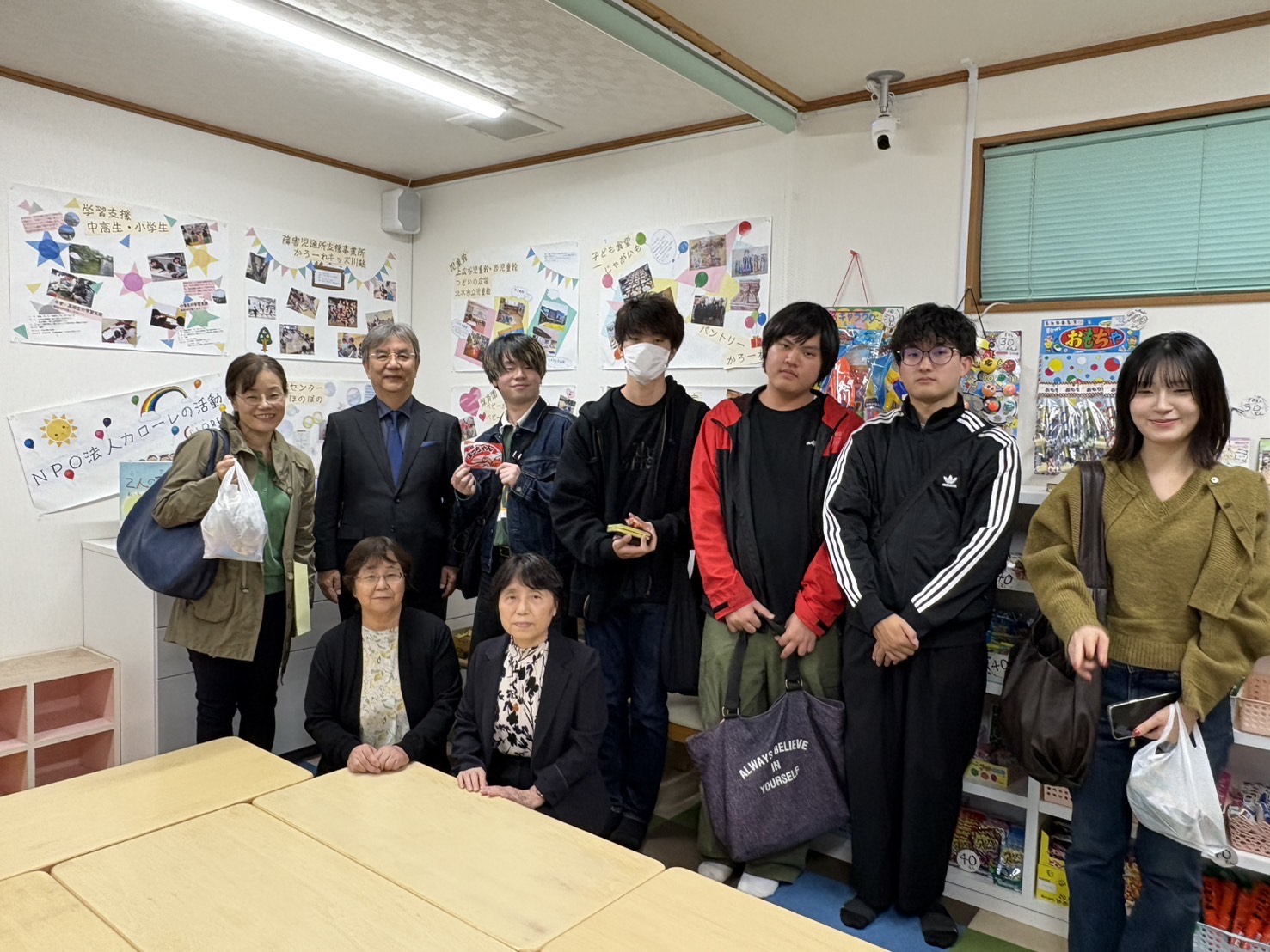 10月22日(水)城西大学講師、牧野郁子氏と学生6人、鶴ヶ島市社会福祉協議会職員小林氏がカローレキッチンこどもひろばを訪問、カローレが目指す駄菓子屋プロジェクトの活動、NPOの活動のあり方やカローレの今までの活動について、学生たちの将来の夢と絡めてたい焼を食べながら2時間近く談笑した。帰りには、彼らにも懐かしい駄菓子を買ってくれました。