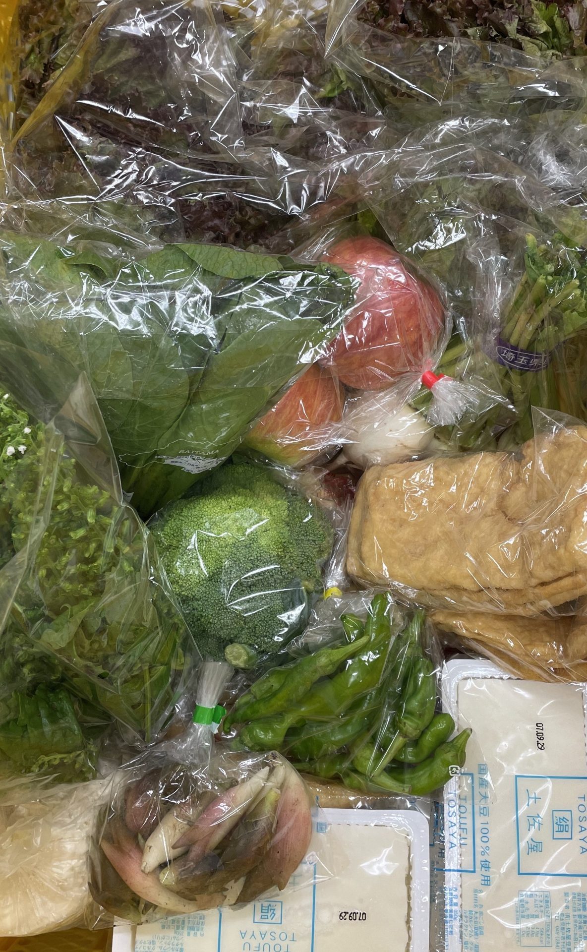 9月25日にブロッコリーやサニーレタス、かぶ、小松菜、大葉、みょうが、甘長とうがらし、りんご、
