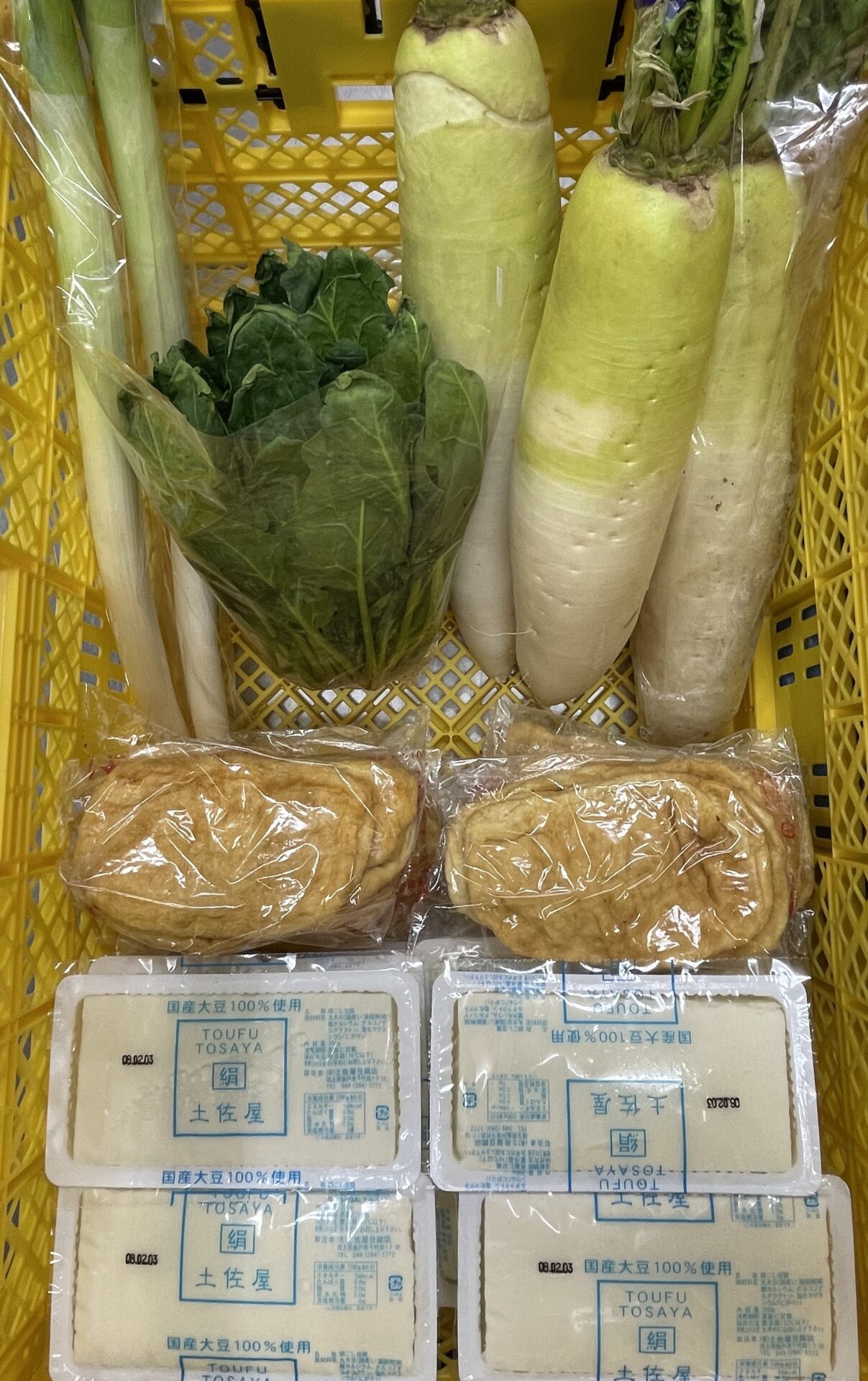 1月29日に大根や長ネギ、ほうれんそう、豆腐、あぶらあげを頂きました。