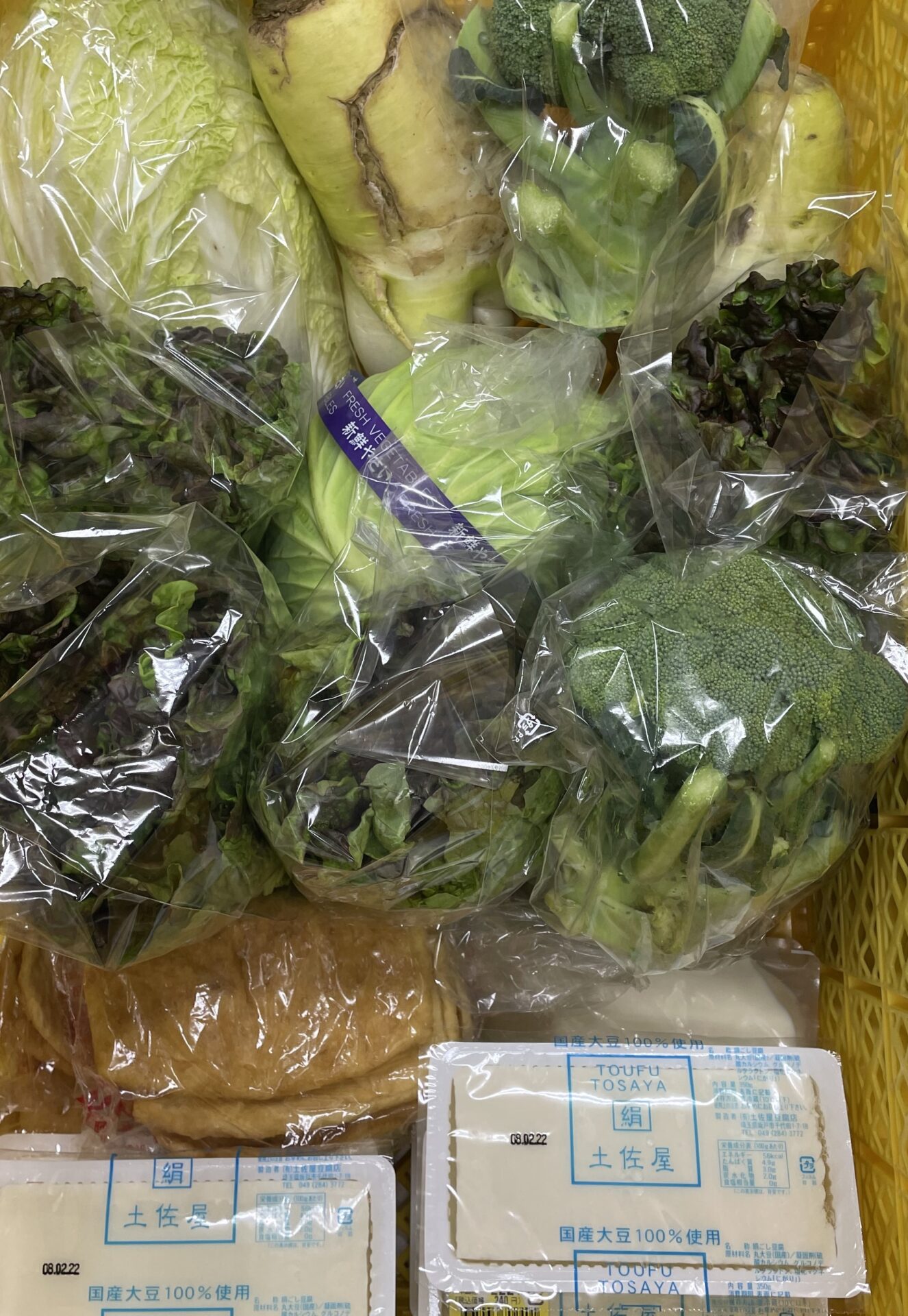 2月19日に白菜やキャベツ、ブロッコリー、サニーレタス、大根、豆腐、あぶらあげ、豆乳を頂きました。