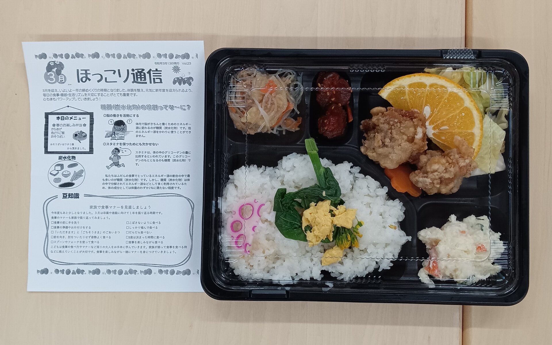 2026.03.17 test 【弁当配付】3月 ほっこり弁当便で203食配付しました 3月13日(金)に弁当支援「ほっこり弁当便」を実施しました。 今回は「春のお祝い弁当」でした。 一緒に企業様から頂いたお米やゼリー、お菓子などを配付しました。 ありがとうございました。